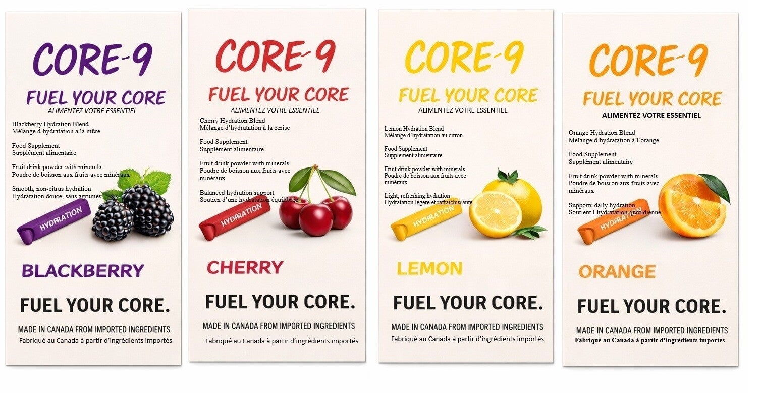 By staying within Canada’s food framework and aligning with ingredient standards overseen by Canadian Food Inspection Agency, Core-9 avoids regulatory complexity while delivering a transparent, affordable hydration option. The result is a product that is easy to understand, easy to scale, and trusted by consumers seeking clean hydration without energy-drink additives.